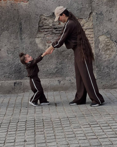 ست مادر دختری مغزی دوزی قهوه ای کرپ مازراتی گرم بالا